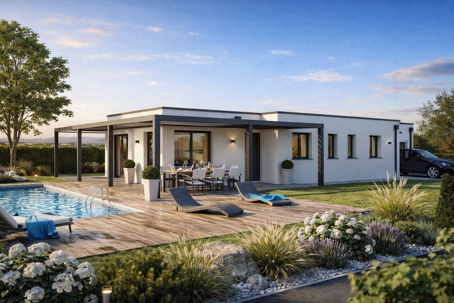 Le modèle Dyonysos est une magnifique maison contemporaine à toit-terrasse, dessinée par un architecte.